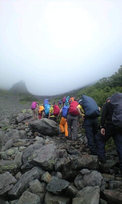 そんな雲の中出発。ザイテングラードの岩場は慎重に。