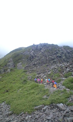軽い休憩の後、みんなで空身で岩稜の山頂に向かいます。