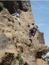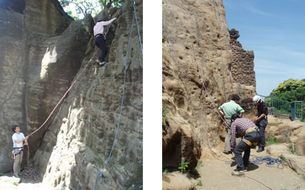 一歩一歩はあまり大きくせず、山を歩くときと同じように登り降りをしました。降りるほうが意外と難しく、登れたのに降りれないなんてこともありましたが、登れたところは降りれるということで、じっくり足場を探して、みなさん安全に降りてくることが出来ました。
