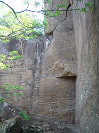 そして、あちらこちらに岩の練習場があります。昔はクライミングジムがなかったので、ここで練習をしたそうです。今回もいくつかの団体が練習に来ていましたが、いつもより空いていたようです。